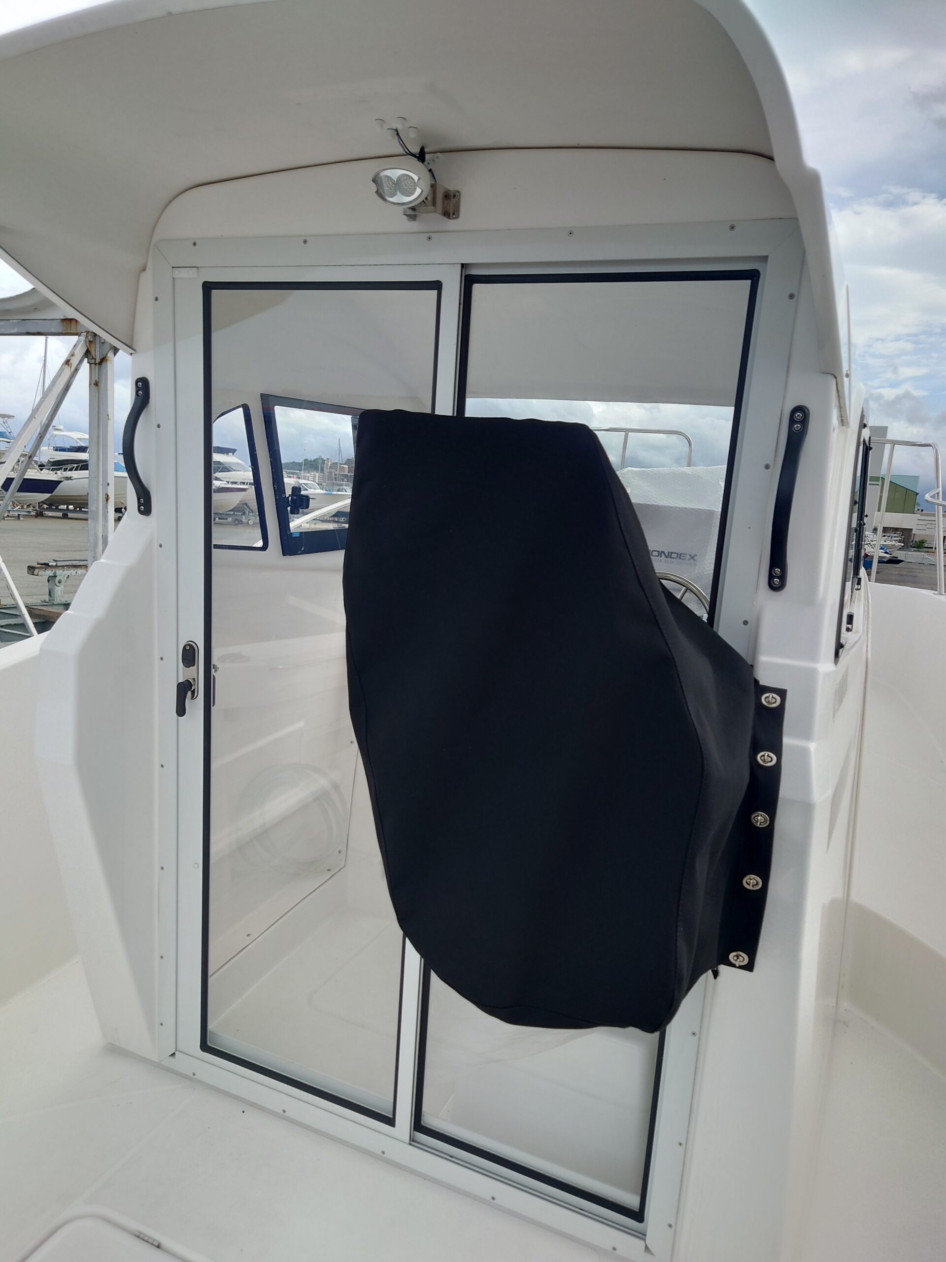 ● 完全オーダー・ワンオフ製作操舵席の形状に合わせて採寸し、無理のないフィット感になるよう設計しています。● 風でバタつきにくい構造屋外保管や港での使用を想定し、不要なバタつきが出にくい形状を意識しました。● 操舵席全体をまとめて保護ハンドル・操作部・パネル周辺を被せるだけでまとめて保護できます。● 見た目もスッキリ実用性だけでなく、船の雰囲気を壊さないシンプルな仕上がりです。