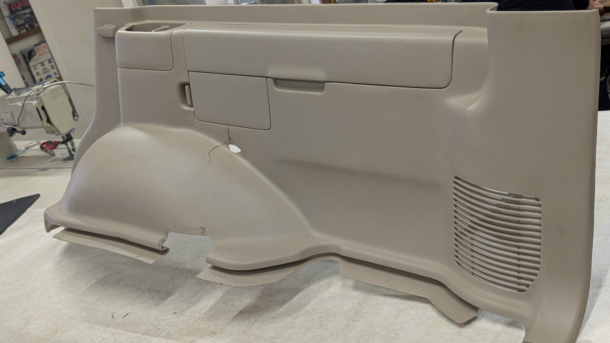 今回は、ランドクルーザーのカーゴ室パネル(クォーターパネル)にできた割れ・欠け部分の内装リペア施工をご紹介します。