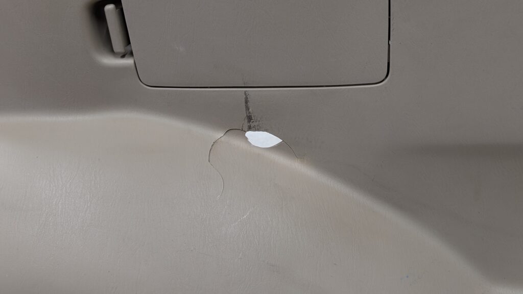 部分的な破損ではありますが、カーゴ室は目につきやすい場所のため、内装全体の印象を大きく下げてしまいます。