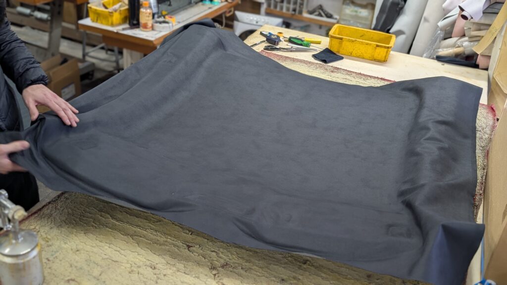 ■純正風霜降りスエード仕上げ今回は純正の雰囲気を崩さない霜降りタイプのスエード生地を使用。